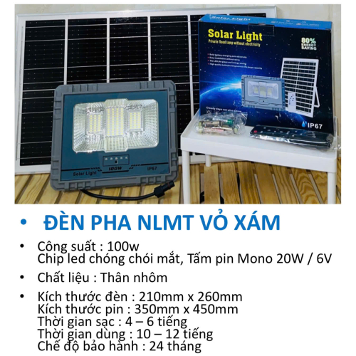 Đèn pha năng lượng mặt trời vỏ xám là giải pháp chiếu sáng tiết kiệm điện – tiện lợi – bền bỉ ngoài trời. Sản phẩm sử dụng chip LED SMD siêu sáng kết hợp tấm pin năng lượng mặt trời Monocrystalline cho khả năng sạc nhanh và chiếu sáng ổn định suốt đêm.